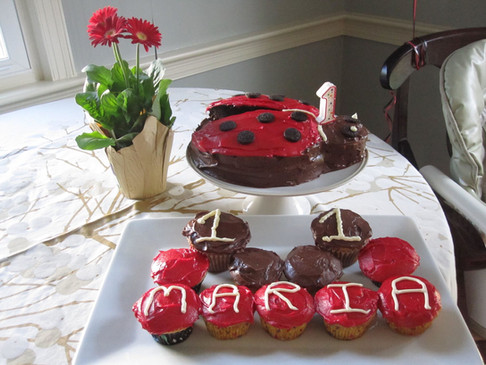 2015 - Lady Bug cake for the lady and Tank Cakes (other one is off camera) for the boys